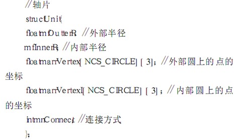 在進行三維動畫顯示之前,我們必須對軸的模型加以確定,因為車削時需要改變軸的尺寸,因此必須用一種方法來記錄軸上面的尺寸. 用下面的結(jié)構(gòu)體來表達軸上的尺寸信息: